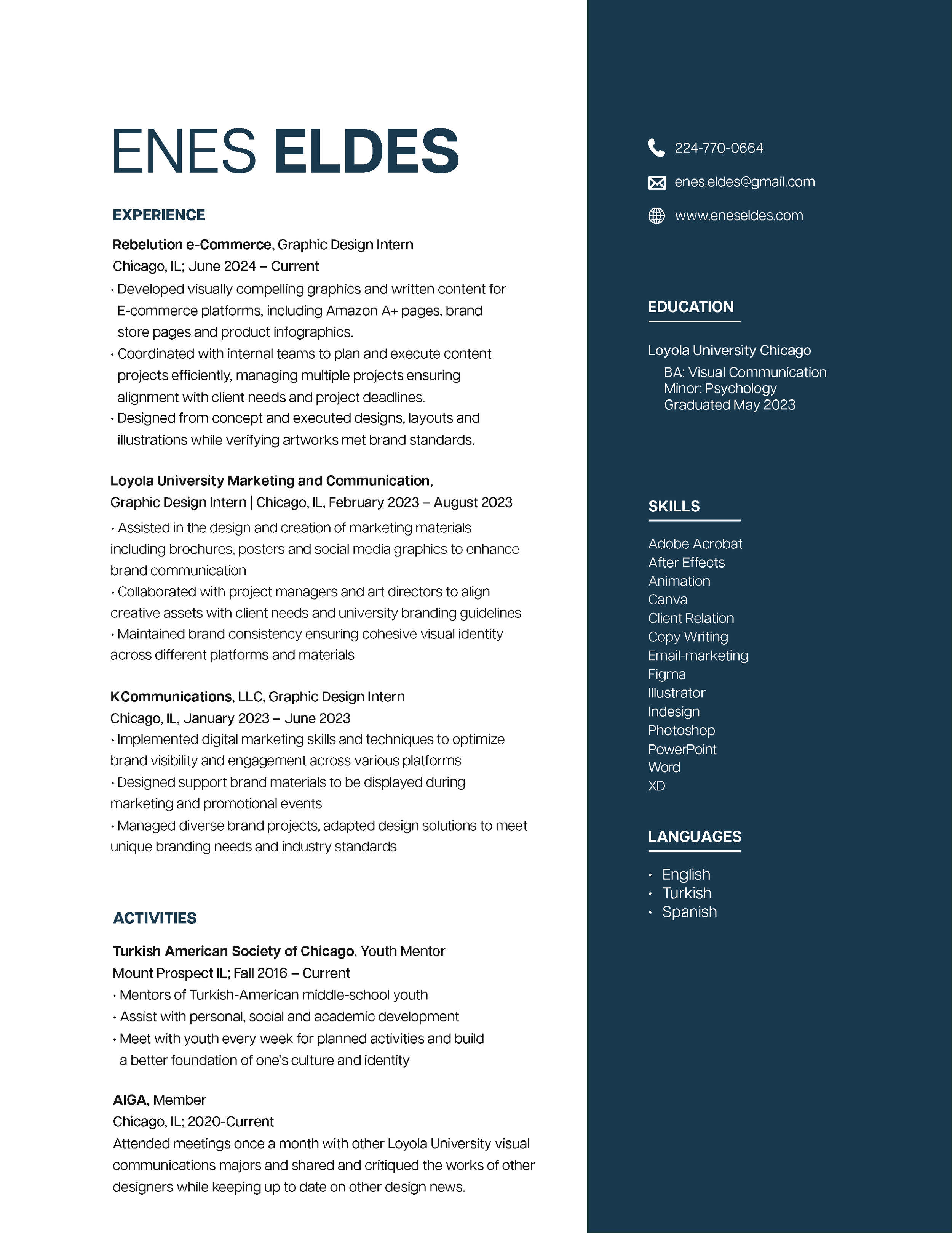 I am a visual communications graduate from Loyola University Chicago with a passion for visual storytelling and innovative design.